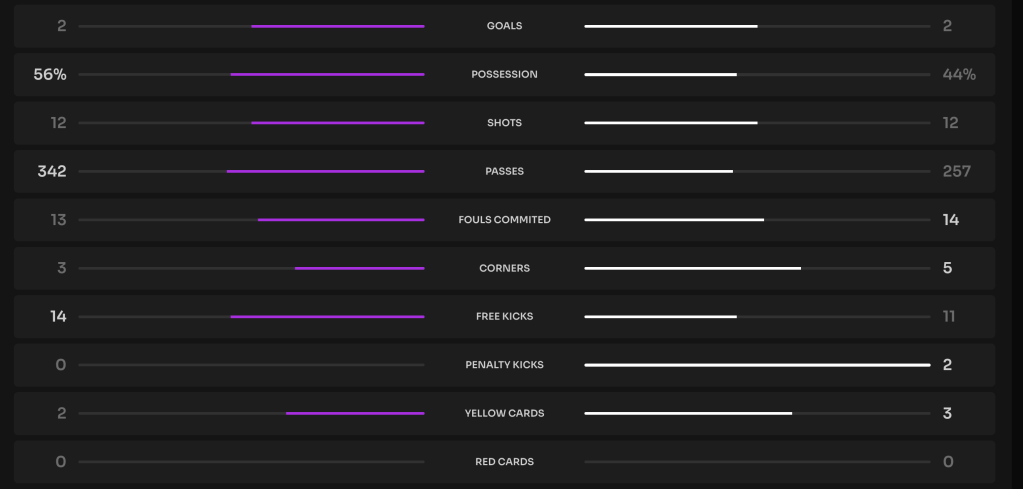 Strangely enough, BOTH of their goals were penalties. The refereeing gods did not smile on us today.