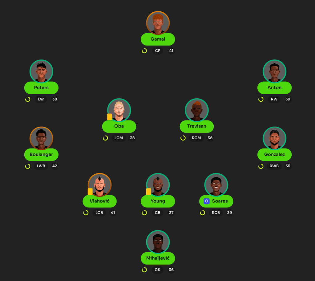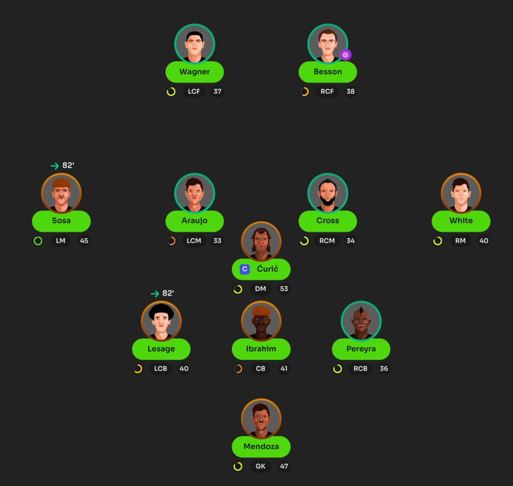 A nice little 5-2-3. Wing backs seem to be proving all the rage in Footium, so we were a bit worried about coming up against them.