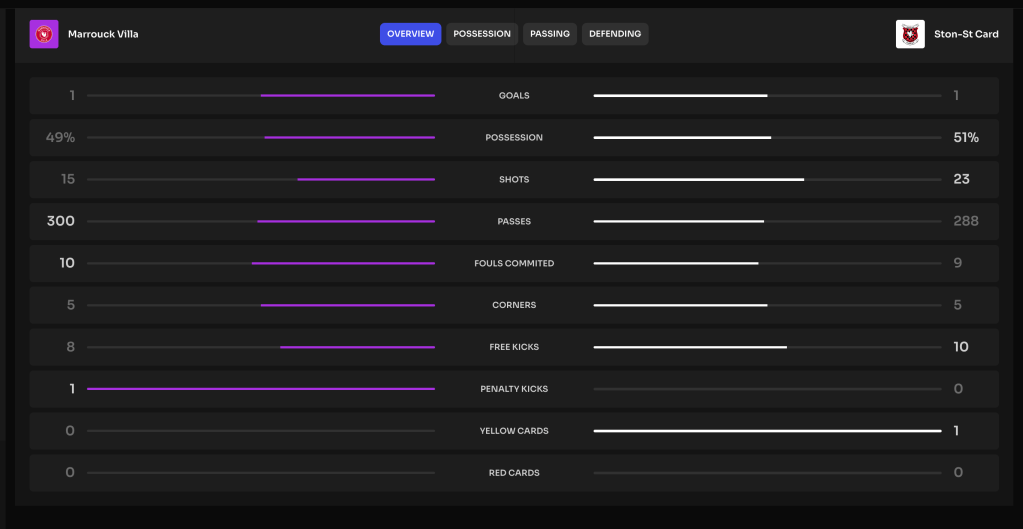 You can see that this was actually a surprisingly open ended game! 38 shots across both teams, with us having more passes, whilst they had more shots and more possession (slightly!)