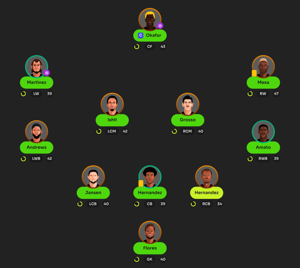 This left us with a slight advantage of +1.6 in squad rating at the time of the match.