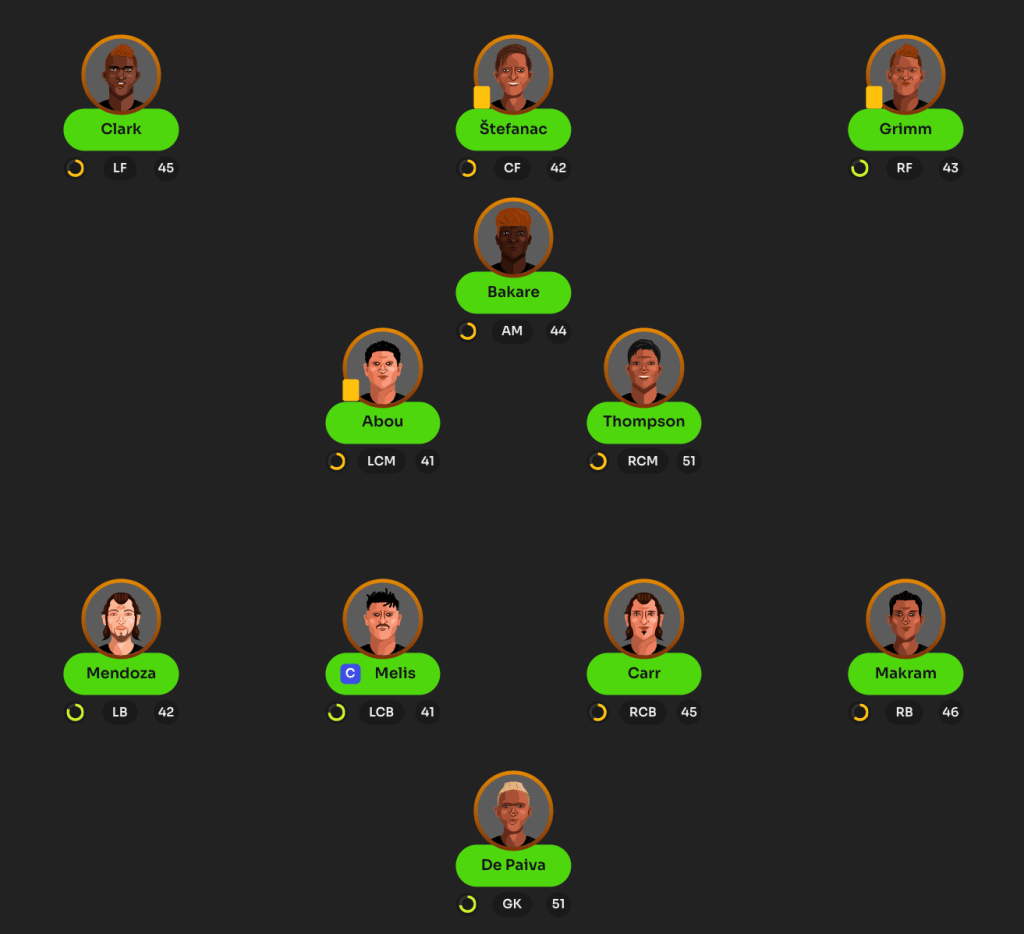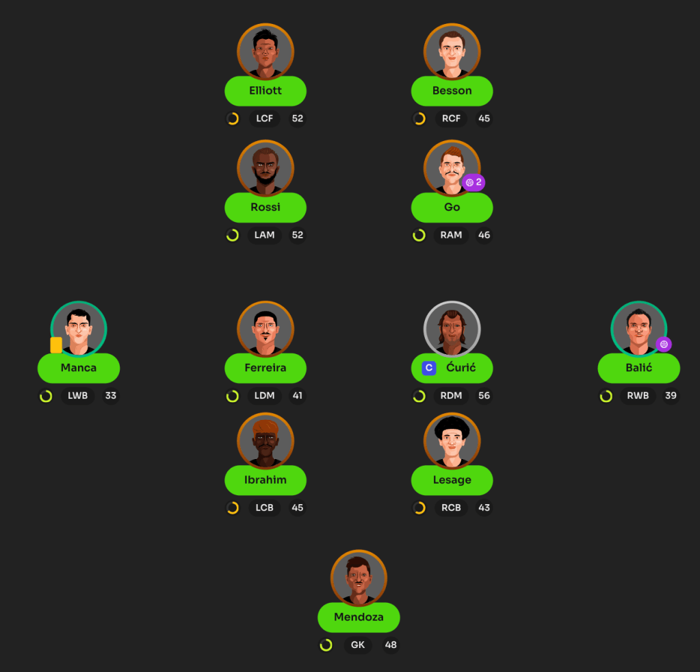 Other than our very weak wing backs, this is definitely a formation that plays to our strengths. This is a more recent screenshot, so the players were slightly weaker when the match happened, but we have invested a lot in the middle of the park so it was good to be able to use them!