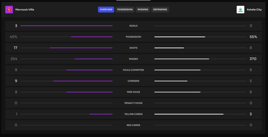 Looking at the stats, it seems we were really direct! Less possession and a lot less in the way of passes, but with more shots, more corners and 3 big goals!